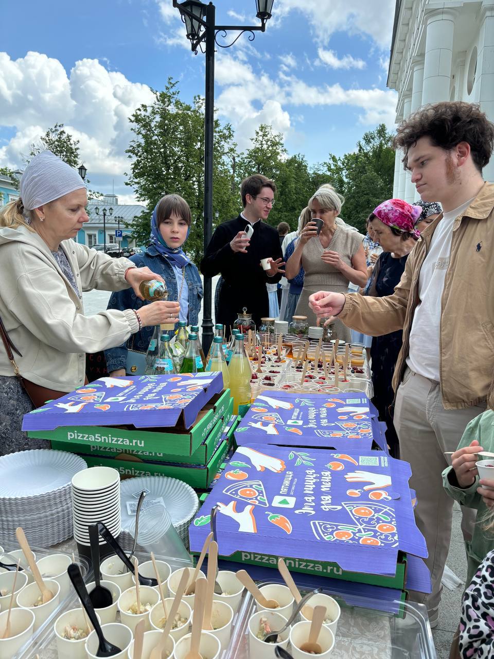После совместной молитвы и причастия общение детей и родителей продолжилось на площади возле храма за совместной трапезой.
