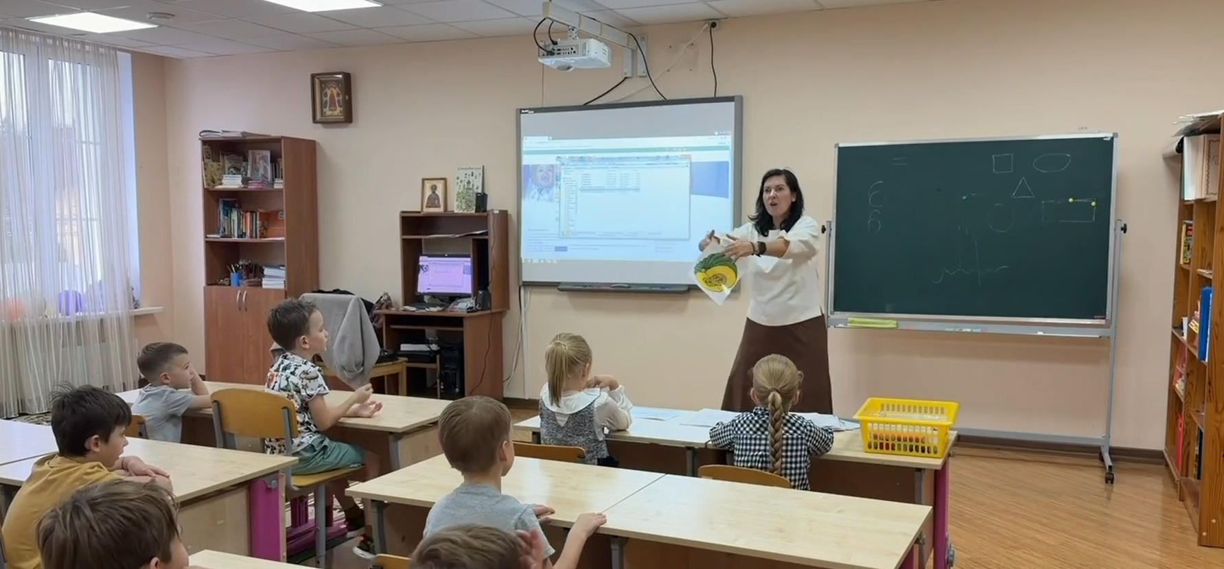И, конечно, была интерактивная игра! На экране — ферма, кролик и пропавшие овощи. Ребята помогали фермеру вспомнить, чего не хватает, но говорили только на английском!