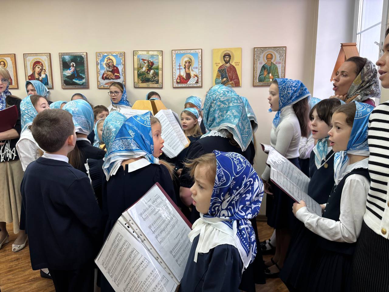 Пели сегодня Гимназисты 2 А и Б классов, а также ребята 3 Б и 5 А вместе со своими педагогами и наставниками.