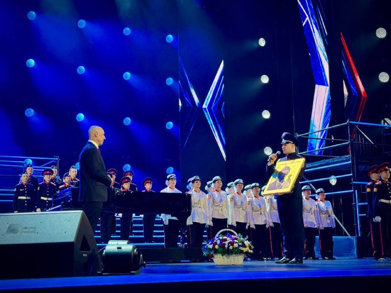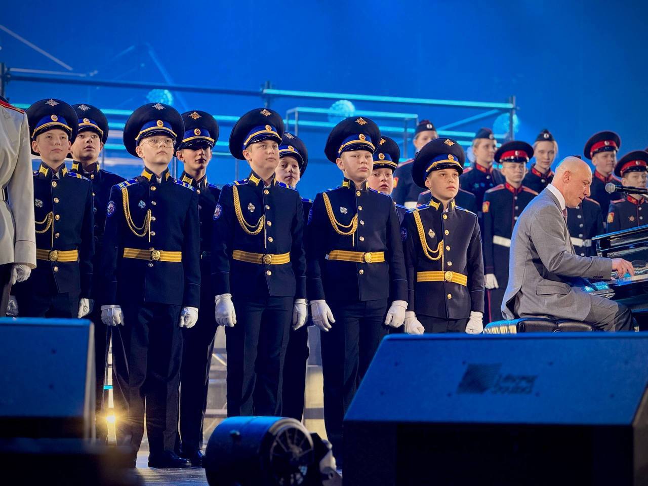 В День кадета России кадеты Гимназии святителя Василия Великого приняли участие в благотворительном концерте Дениса Майданова в Кремле и поздравили с юбилеем народного артиста, человека, который своим творчеством, своей гражданской позицией, всей своей жизнью демонстрирует верность высоким принципам кадетства: