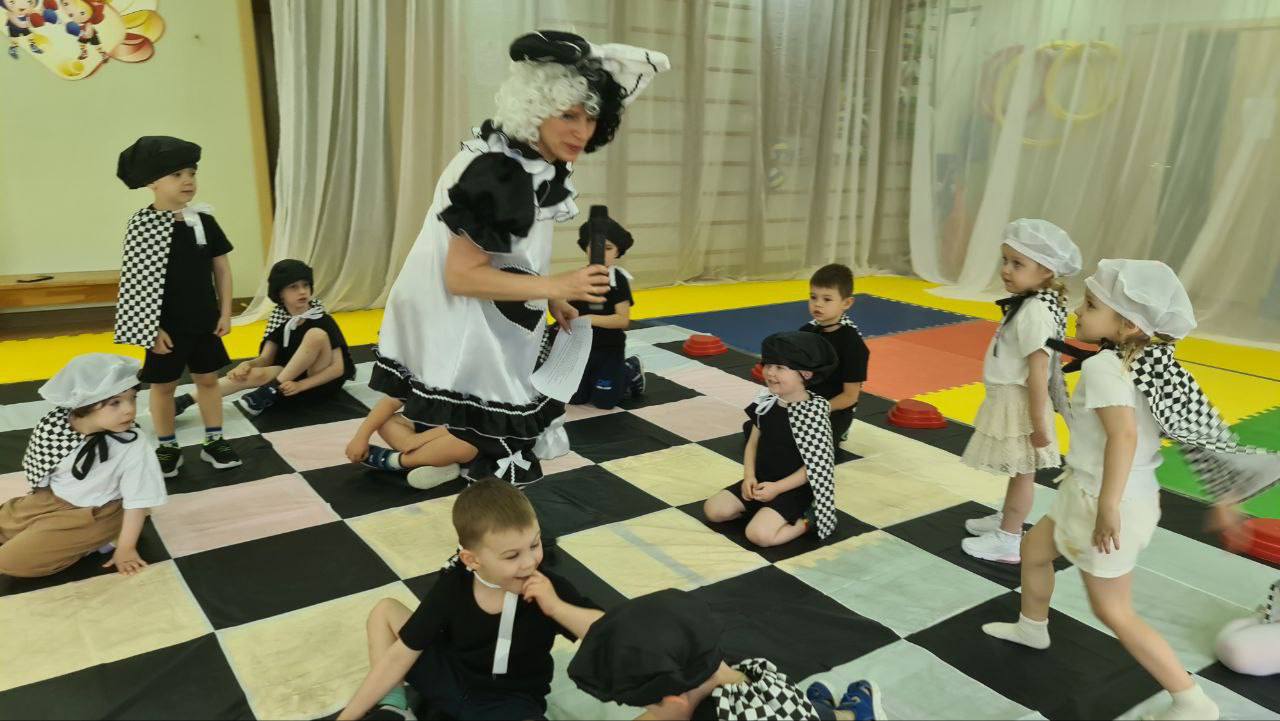 В садике прошли «Шашечные баталии»: дети сами стали шашками, шагали по клеткам, вспоминали правила игры, участвовали в викторине и играли настоящую партию.