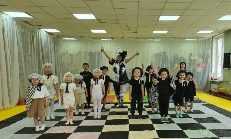 В гости приходила Веселинка — жительница Шашечного королевства, которая рассказала, откуда появилось слово «шашки» и помогла ребятам почувствовать себя настоящими игроками.