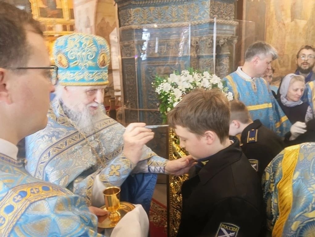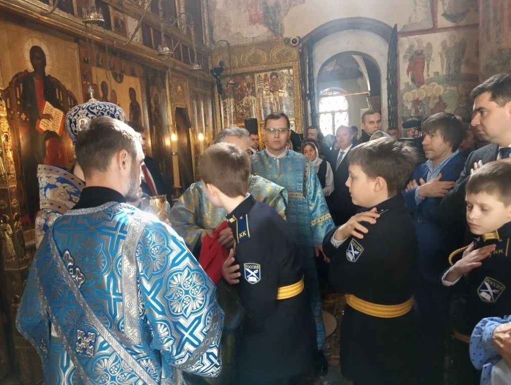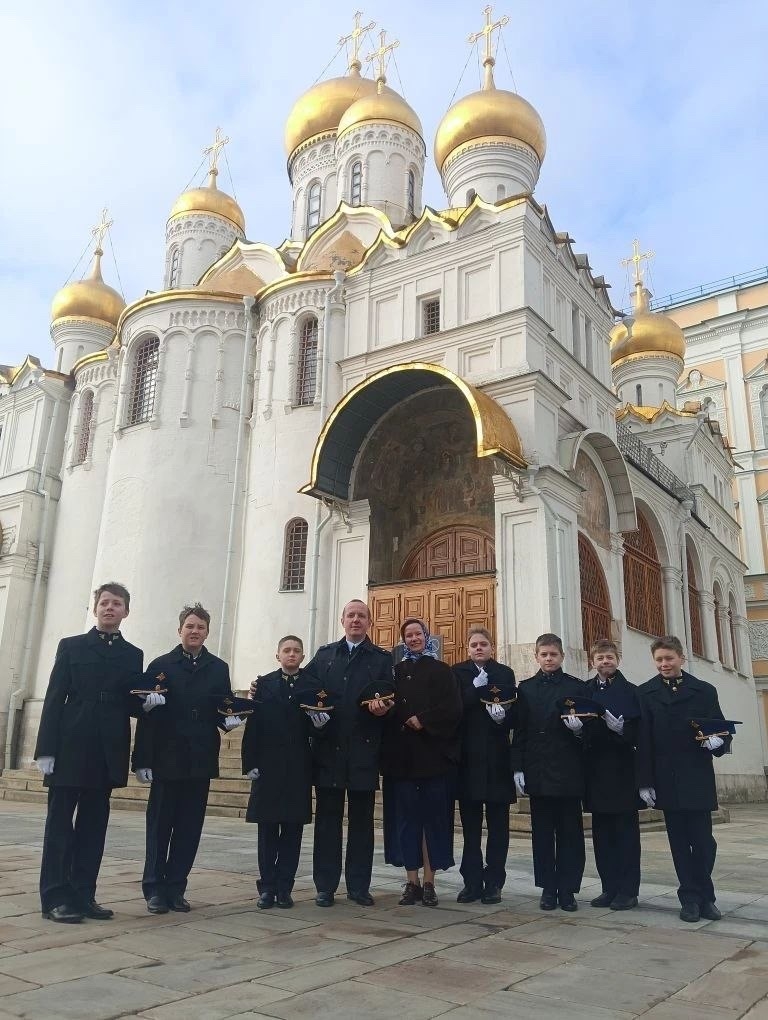7 апреля, в праздник Благовещения Пресвятой Владычицы нашей Богородицы и Приснодевы Марии, кадетам 5 «К» класса посчастливилось принять участие в Божественной литургии в Благовещенском соборе — древнейшем храме Московского Кремля. Литургию совершил Святейший Патриарх Кирилл.