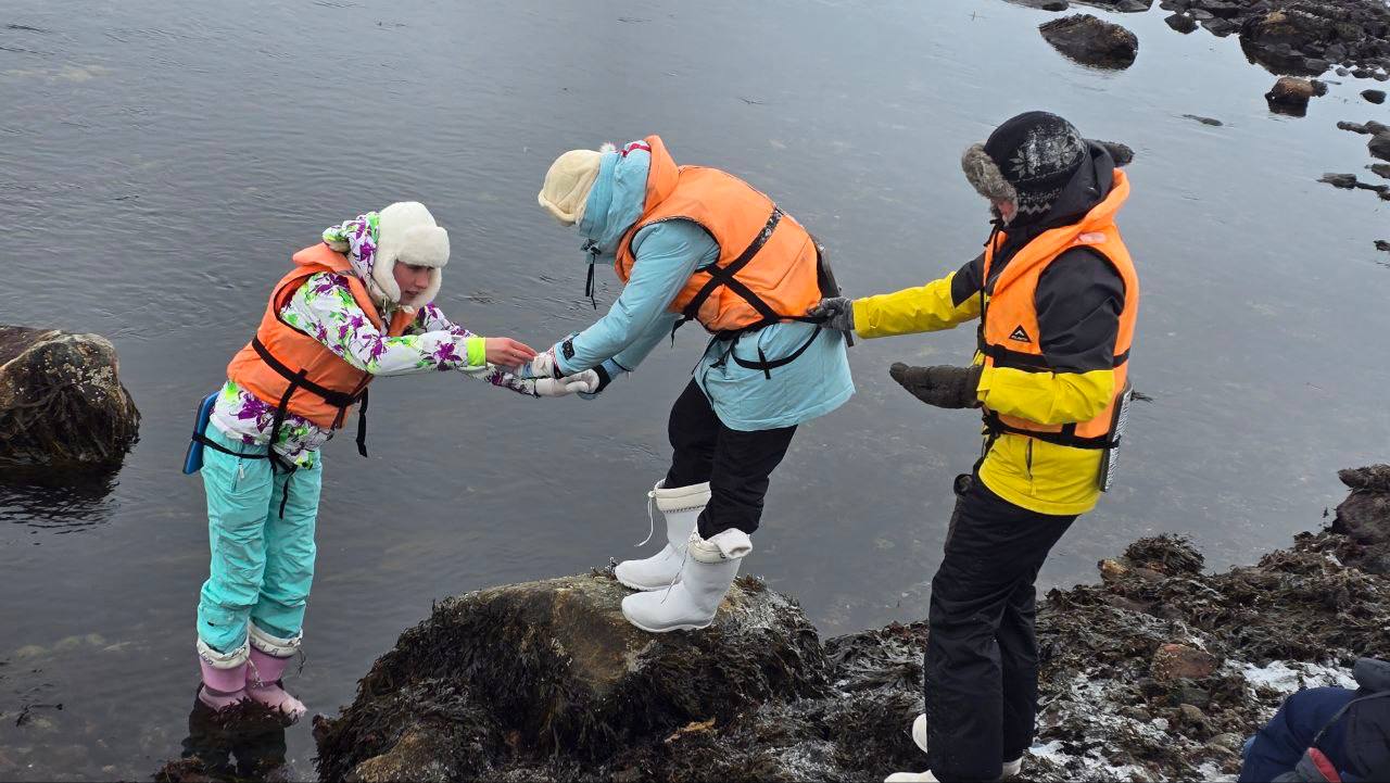 Ученики побывали на острове Большой Епишкин, исследовали окрестности, выезжали на Нильмозеро с рыбалкой и на Морской порог. Кульминацией стал выход в Бухту Биофильтров, где ребята посетили ледовый лагерь дайверов.