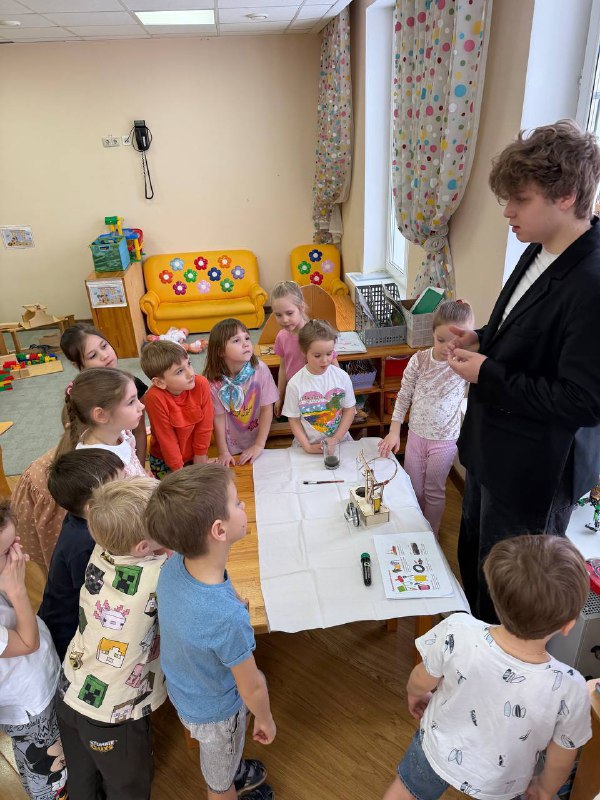 Сегодня в «Васильках» ученик 9 класса химико-биологического факультета провёл для ребят практическое занятие на тему «Нефть. Добыча полезного ископаемого». Старшеклассник доступно рассказал, какую роль нефть играет в жизни человека.