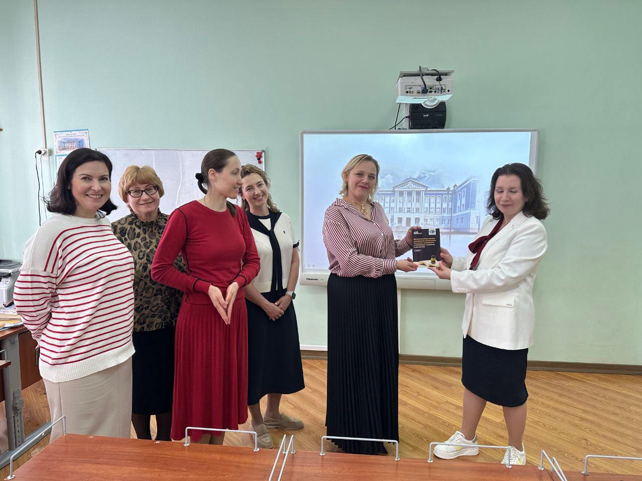 Кроме того, учителя кафедры иностранных языков Гимназии обсудили с деканом план сотрудничества как с целью профессионального роста учителей Гимназии, так и с целью повышения языковой компетенции обучающихся. Авторами монографии Иконниковой В.А. и Цверкун Ю.Б. была подарена книга «Лингвокультурологические исследования англоязычных отраслевых терминологий и современные технологии в лингвистике».