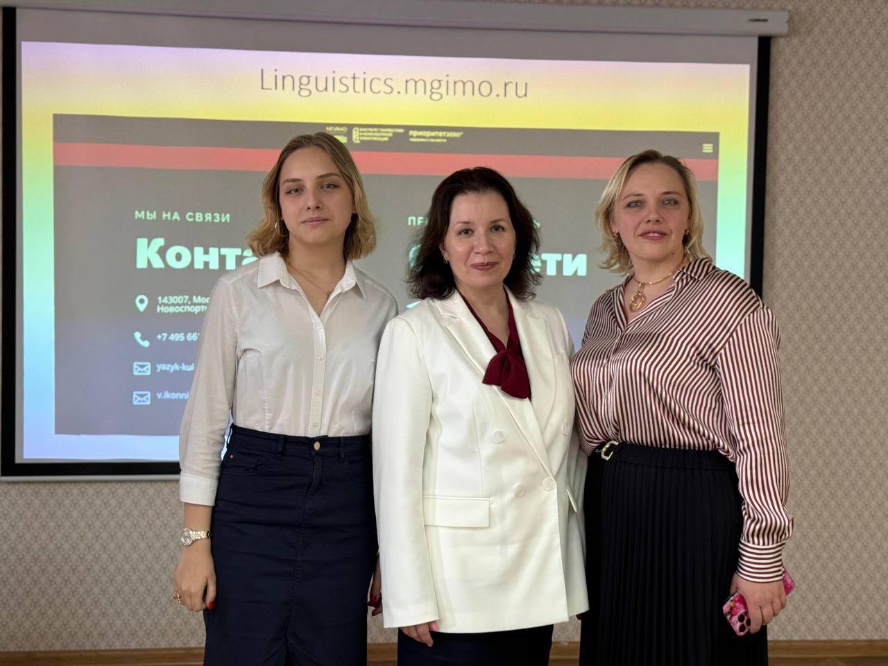 В рамках программы профориентации Гимназистов 8-11 классов состоялась встреча с Иконниковой Валентиной Александровной, деканом факультета лингвистики и межкультурной коммуникации МГИМО МИД России, доктором филологических наук, доцентом, автором более 80 научных публикаций в российских и зарубежных изданиях; Цверкун Юлией Борисовной, заведующая кафедрой лингвистики и переводоведения ФЛМК МГИМО, кандидатом филологических наук; Голощаповой Мариной Викторовной, доцентом кафедры лингвистики и переводоведения ФЛМК МГИМО, кандидатом филологических наук, доцентом; Мезенцовой Анастасией Дмитриевной, сотрудником деканата ФЛМК МГИМО, преподавателем кафедры лингвистики и переводоведения ФЛМК МГИМО.