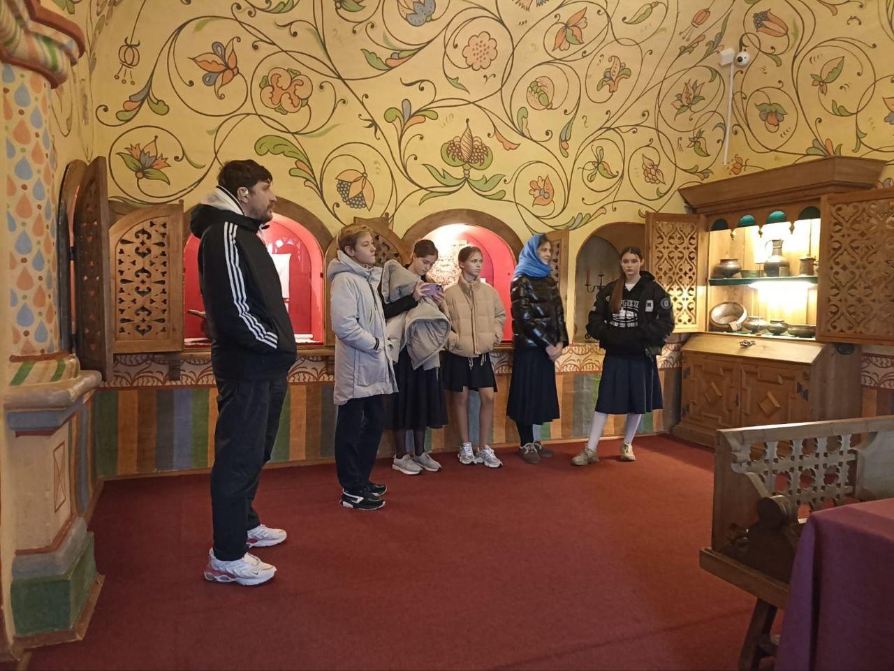 Во время экскурсии ребята узнали, когда был основан монастырь, с чего началась история монастыря, почему в обитель были возвращены святые мощи её основателя, которые в апреле 1919 года были увезены на Лубянку, как на богомолье в монастырь приезжала царская семья, чтобы в уединении провести время в молитвах. Особенно интересным было посещение Царицыных палат и Собора Рождества Пресвятой Богородицы.