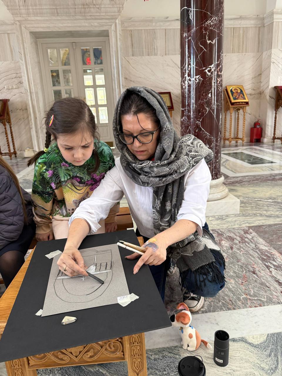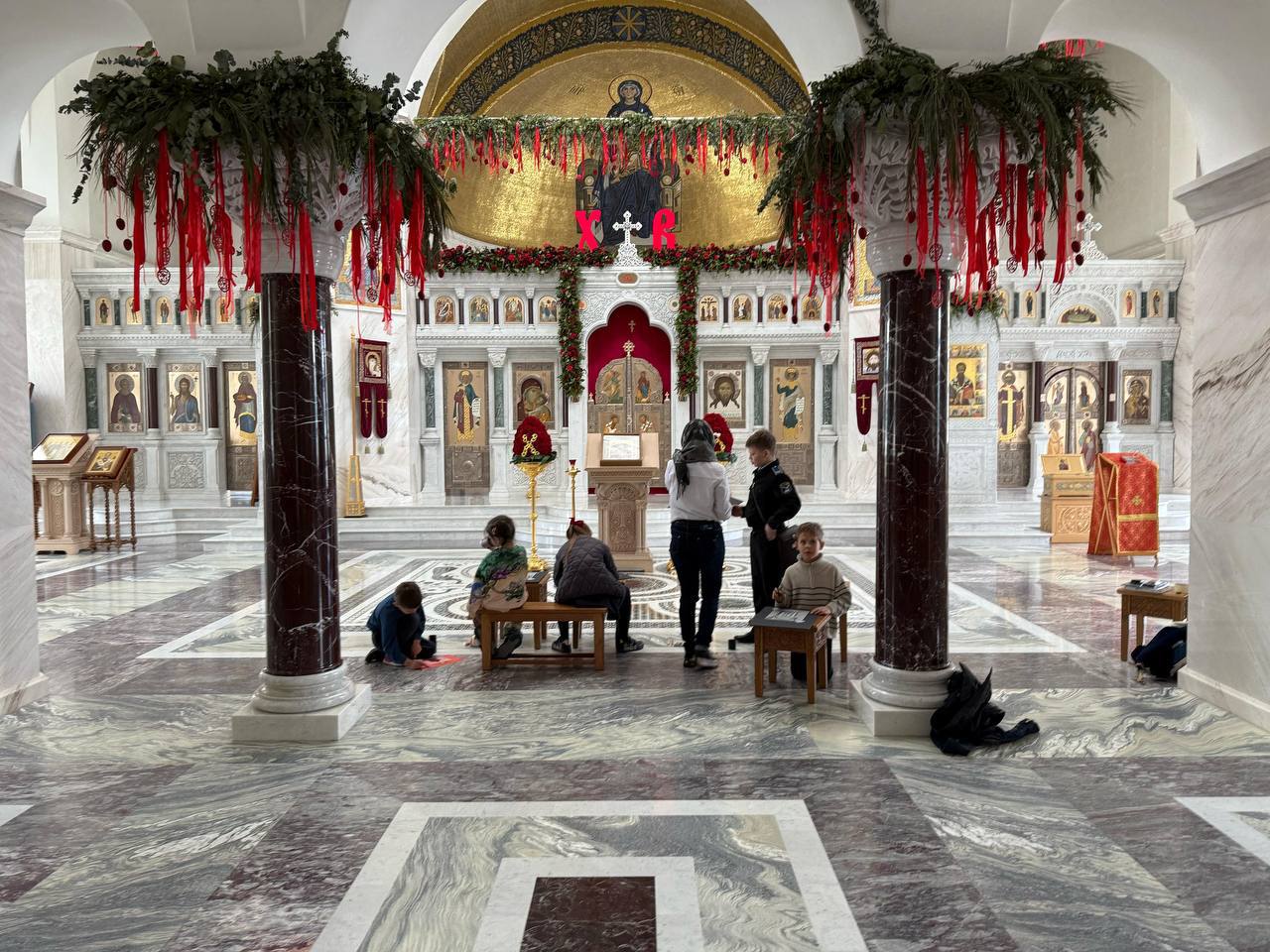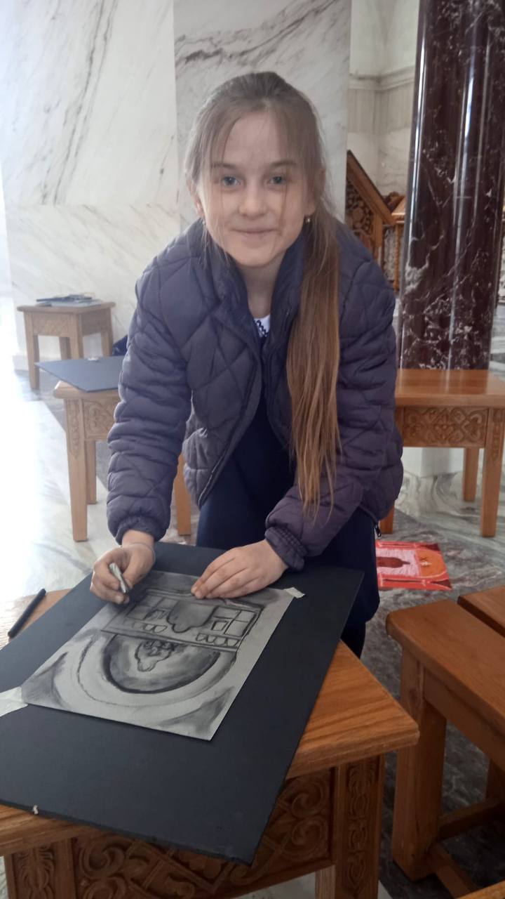 По благословению иерея Александра Стародубцева Гимназисты и воспитанники детского отделения «Васильки» вместе с педагогом Дарьей Косиченко посвятили творческий урок рисованию интерьера храма Святителя Василия Великого.