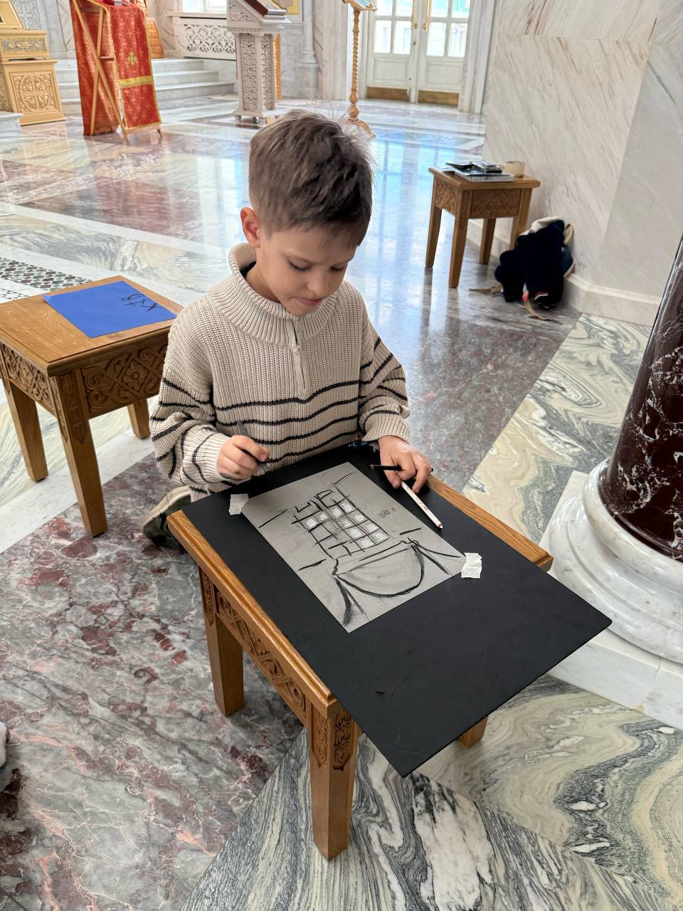 Шестилетний воспитанник дошкольного отделения «Васильки» Илья поделился своими впечатлениями: «У меня мурашки по коже от того, что я рисую храм!»