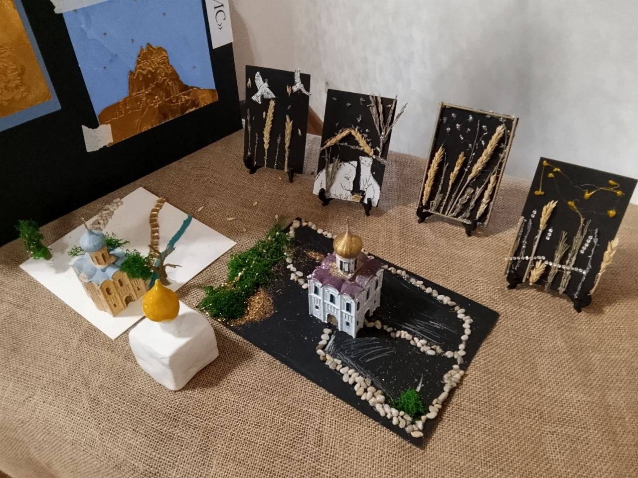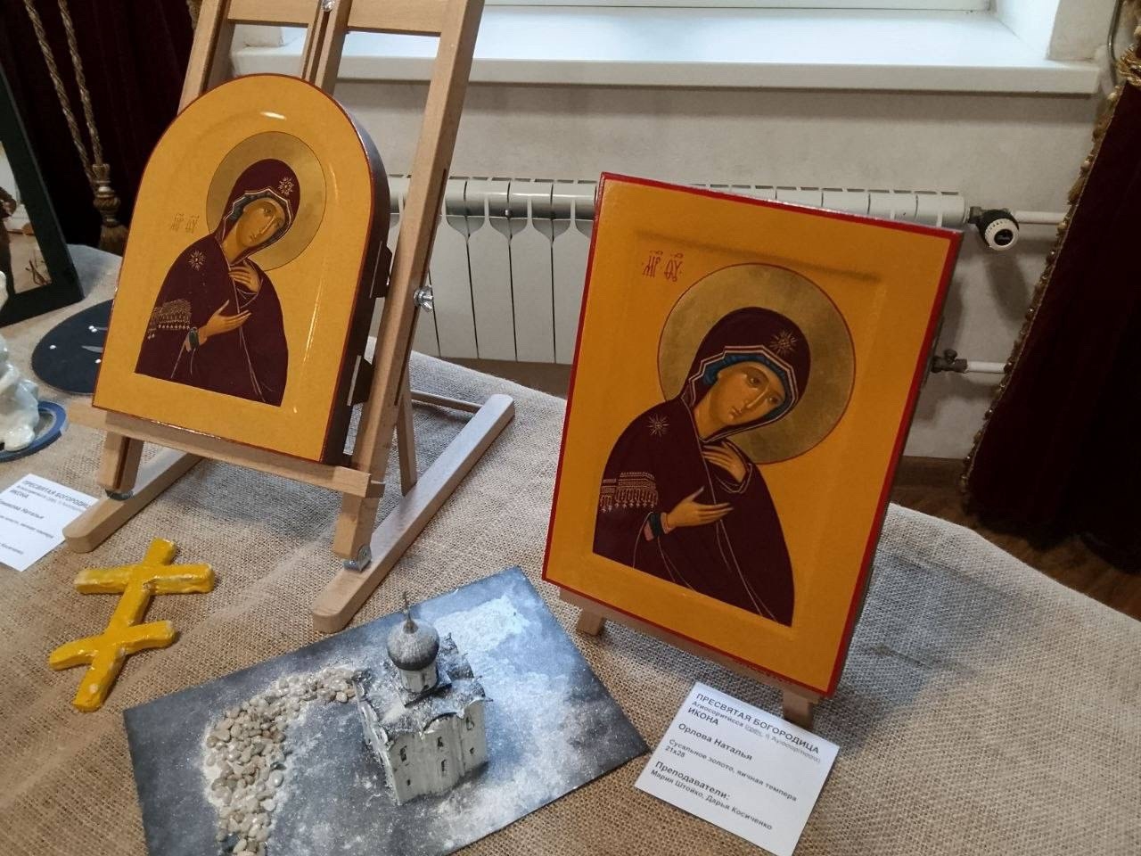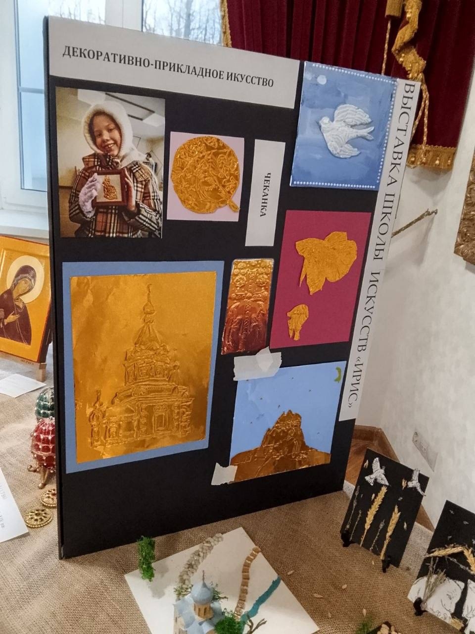 Ученики классов иконописи, живописи и керамики школы искусств «Ирис» представили свои работы в области церковного искусства. Экспозицию также дополнили работы родителей, педагогов и юных художников детского сада.