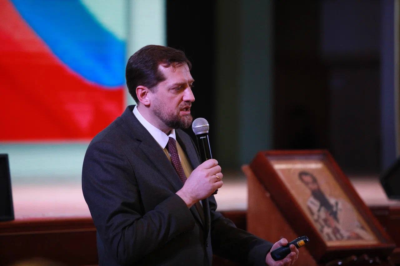 Завершая встречу, директор Гимназии Святителя Василия Великого Иван Алексеевич Смирнов и священник Александр Стародубцев поделились опытом внедрения христианского воспитания в образовательную программу Гимназии — от детского сада до школьных классов.