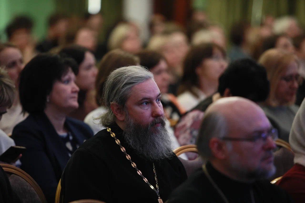 Встречу открыл архиепископ Одинцовский и Красногорский Фома. Он поблагодарил педагогов и сотрудников православных школ за совместный вклад в воспитание подрастающего поколения.