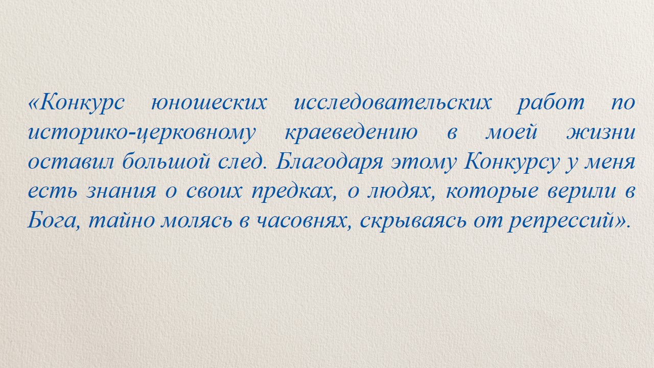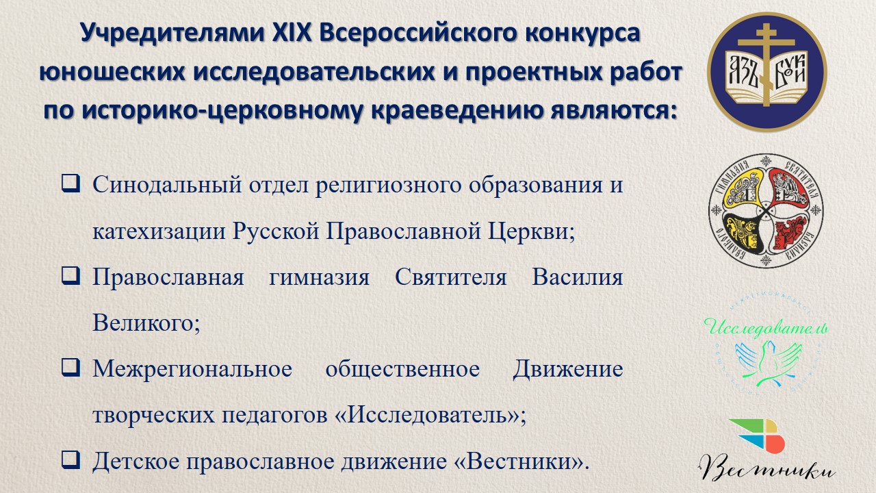 Презентации ХIX Всероссийского конкурса юношеских исследовательских и проектных работ по историко-церковному краеведению: