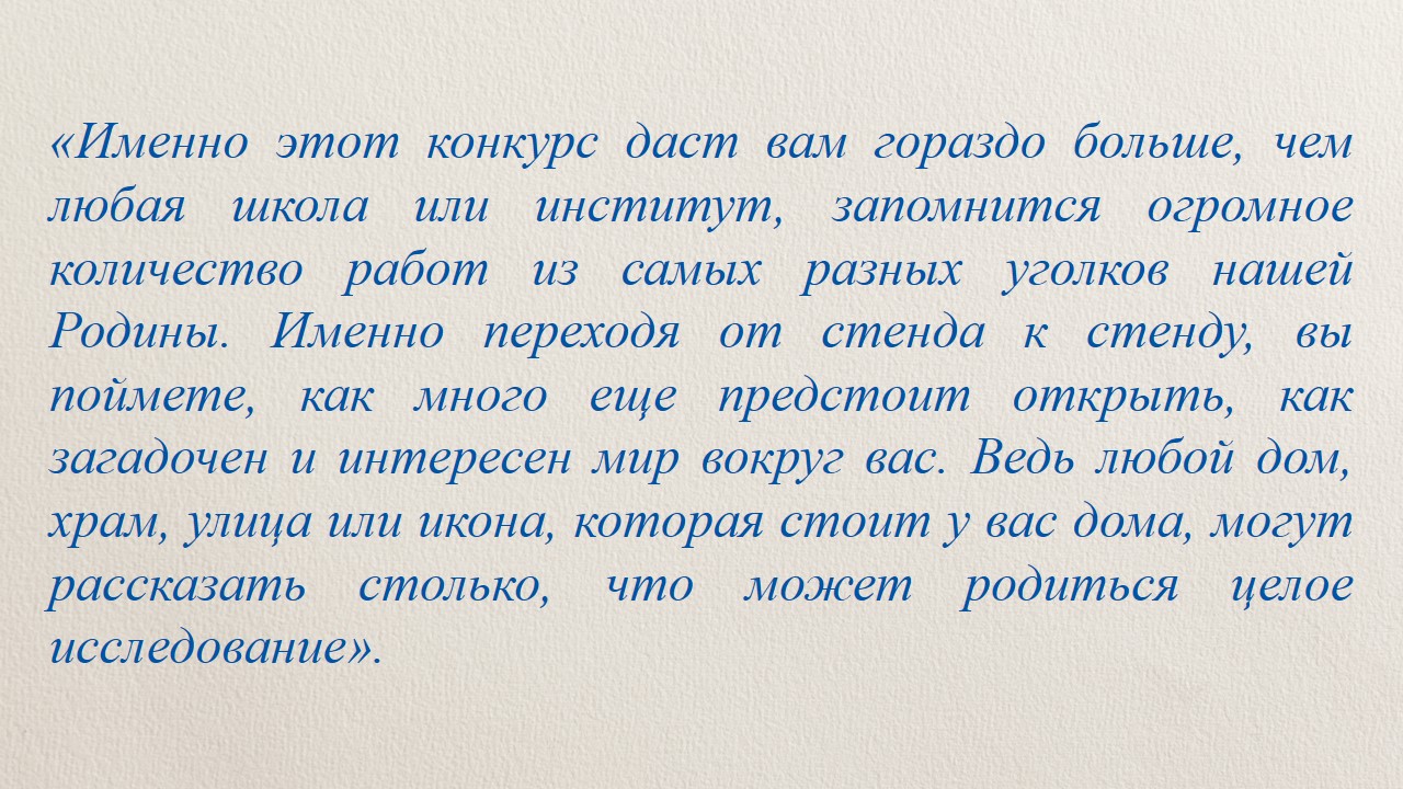 Подробнее с концепцией Конкурса, его целями и задачами, рекомендациями по написанию исследовательских и проектных работ, а также правилами подачи заявки можно ознакомиться в Положении о Конкурсе: https://vasiliada.ru/students/istoriko-tserkovnoe-kraevedenie